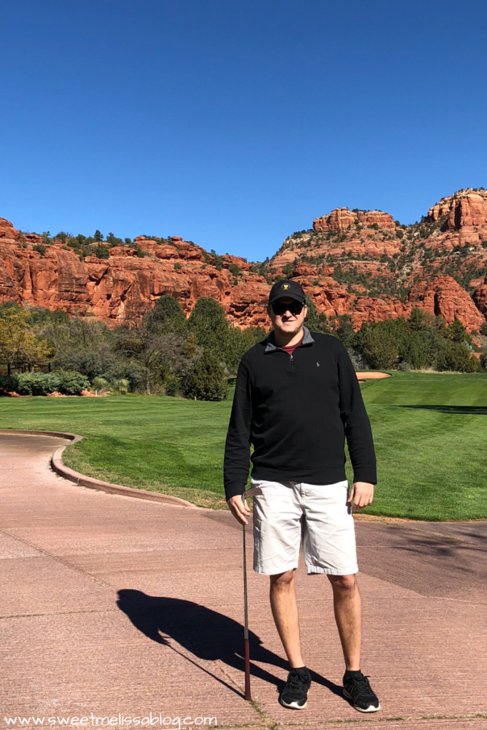 Unfortunately, unless you schedule activities and tours ahead of time, it’s very difficult to do anything last minute in Sedona.  We looked into a helicopter tour, a couples massage, ATV/buggy rentals, etc. but everywhere was booked.  Shane was able to get a tee time at Oak Creek Country Club so I rode along in the golf cart while Shane played 18 holes.