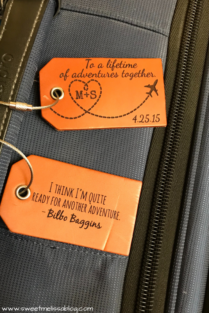 Shane didn’t find out our travel plans until we got to the airport and even then he didn’t know everything I had planned for our long weekend getaway.  Remember these luggage tags I got for our three year anniversary?  We finally got to use them on a plane 🙂
